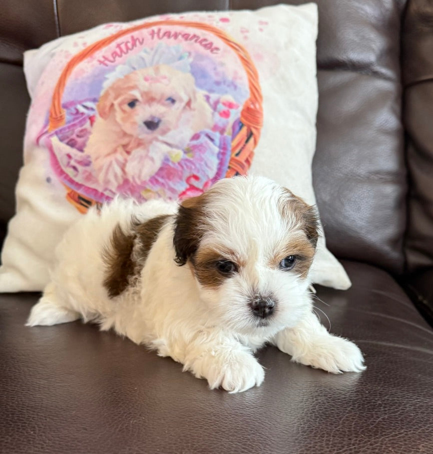 Meet Betty, one of our Female AKC Havanese puppies, ready to find a loving forever home! This little Tri-color lady is 6 weeks old, with a silky soft, hypoallergenic coat perfect for snuggles. She loves to play and has the cutest personality. This pup is great with kids and other pets, making her the perfect addition to any family.